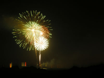 ついに花火が打ち上がりました。夜9時からの打ち上げ。
