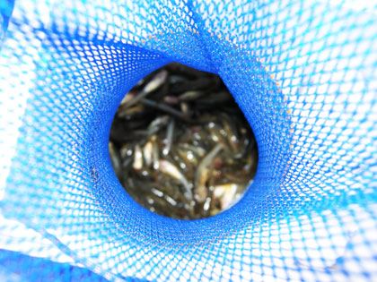 (笑)小さな当たりだけど、最初の一匹。おぉこれはもう何年振りの再会だ・・・さすがにハグをしてしまうと、彼の内臓がつぶれてしまうので、それだけは止めておいた。僕はそのくらいの社会常識はアメリカで得た(?) それからも連続して、やってくるハゼ達。もし、彼らが街中でティッシュを配っている連中だったらと思うとぞっとする。そのぐらい連続的にヒットする!彼らは小柄なホビットぐらいのサイズしかない。きっと5~8cmだ。異常気象の波で、彼らの成長がこの年は異様に遅いのか・・・こんなベイビー達を釣りに川へやってきたのではないけれど、楽しめた。親父と自分の二刀流の釣りが功を奏した。僕は2つの竿に慣れるまでちょっと時間はかかってしまったけどね。そして、地上の楽園に舞い降りた天使たちが彼らだ。